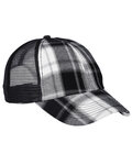 100% cotton mid-weight twill crown & visor; 100% nylon mesh back panels; 100% cotton mid weight twill crown & visor, 100% nylon mesh back panels; 6-panel, unstructured, low-profile; Snap back plastic closure matching back mesh color; Heavy enzyme wash; Self fabric matching color sweatband; Seam tape matches mesh back; Matching color eyelets and pre-curved visor;